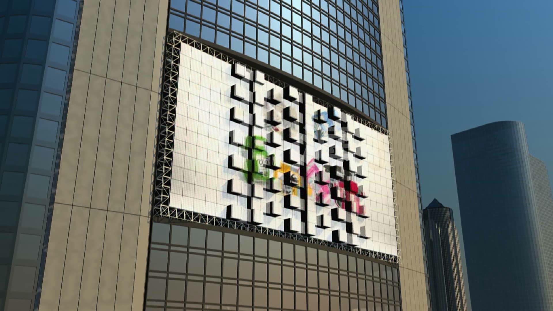 洪海光電集團研發(fā)會跳舞的led顯示屏,led升降屏,將整個led全彩顯示屏分割成幾百上千個方格型子機,整個led顯示屏箱體內(nèi)由一臺微型數(shù)控電機驅(qū)動,推動導(dǎo)桿使方柱體按照電腦編制的程序先后時差向前凸起----落下----自動換畫;每次凸起---落下一個循環(huán)都會更換一幅畫面,一般設(shè)定8-18種翻動花樣,也可以更多。節(jié)目中晶瑩剔透的箱體在地面上此起波伏。我們將這種效果運用到墻體上,樓頂、高炮,給您的城市帶來十足的動感。使人民駐足觀望,流連忘放。